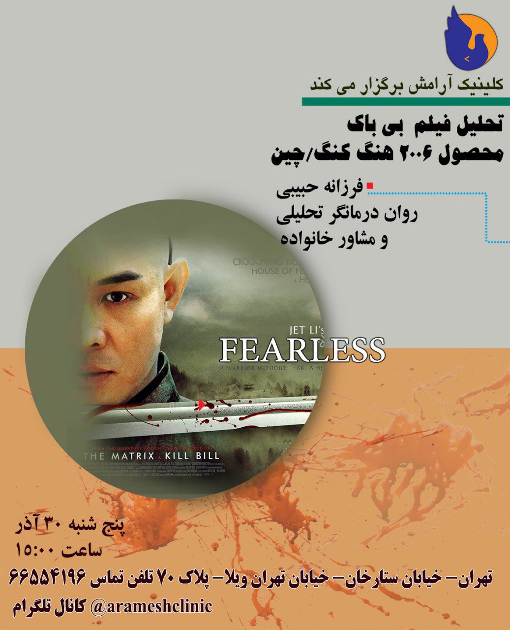 نمايش وتحليل فيلم بي باك پنج شنبه ٣٠ آذر تلفن تماس جهت ثبت نام: ٦٦٥٥٤١٩٦